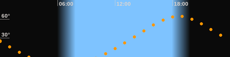 | Höchster Stand (Kulmination) | 18:37 Uhr (h = 64,6°) |