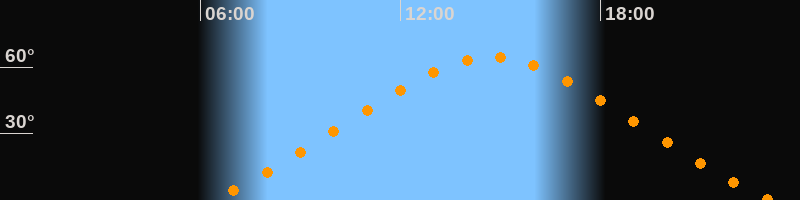 | Höchster Stand (Kulmination) | 14:44 Uhr (h = 64,6°) |