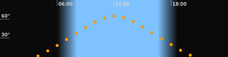 | Höchster Stand (Kulmination) | 12:04 Uhr (h = 64,6°) |