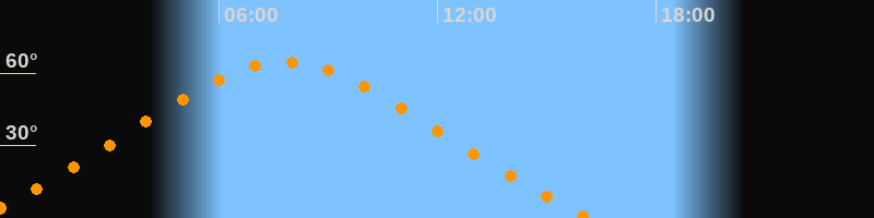 | Höchster Stand (Kulmination) | 07:48 Uhr (h = 64,6°) |