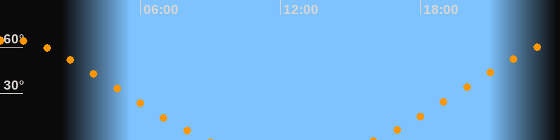 | Höchster Stand (Kulmination) | 00:25 Uhr (h = 64,6°) |