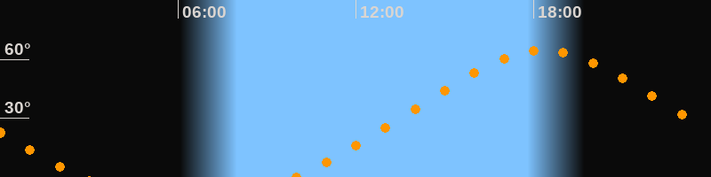 | Höchster Stand (Kulmination) | 18:20 Uhr (h = 64,6°) |