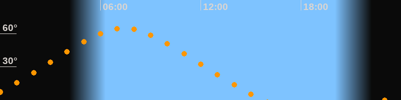 | Höchster Stand (Kulmination) | 07:23 Uhr (h = 64,6°) |