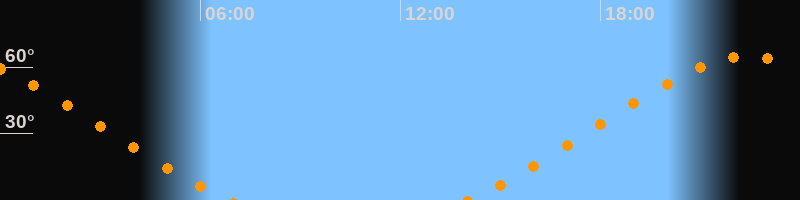 | Aufgang | 14:00 Uhr im Nordosten (αAz = 46,5°) |