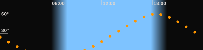 | Höchster Stand (Kulmination) | 18:25 Uhr (h = 64,6°) |