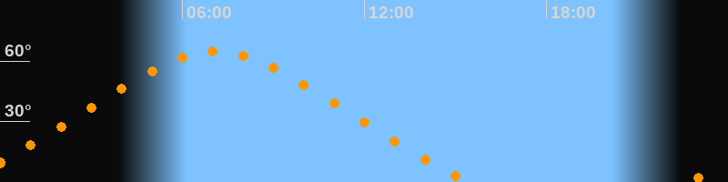 | Höchster Stand (Kulmination) | 07:06 Uhr (h = 64,6°) |
