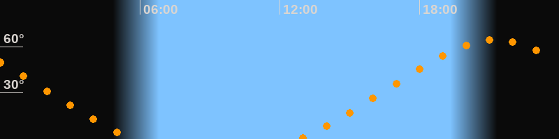 | Aufgang | 12:48 Uhr im Nordosten (αAz = 46,5°) |
