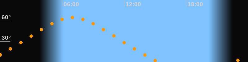 | Höchster Stand (Kulmination) | 07:00 Uhr (h = 64,6°) |