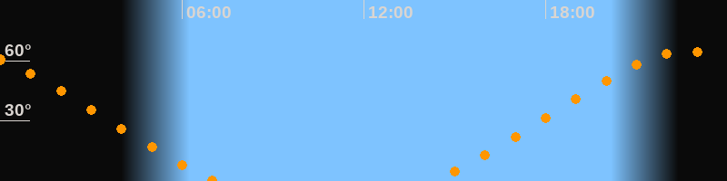 | Aufgang | 14:15 Uhr im Nordosten (αAz = 46,5°) |