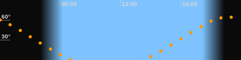 | Aufgang | 14:12 Uhr im Nordosten (αAz = 46,5°) |