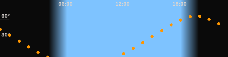 | Aufgang | 12:10 Uhr im Nordosten (αAz = 46,5°) |