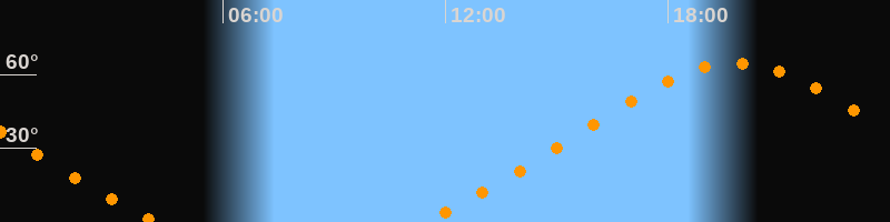 | Aufgang | 11:23 Uhr im Nordosten (αAz = 46,5°) |