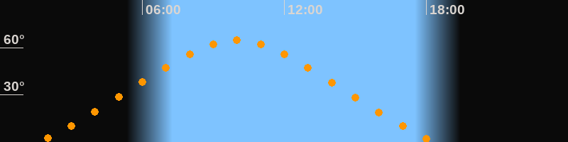 | Höchster Stand (Kulmination) | 09:58 Uhr (h = 64,6°) |
