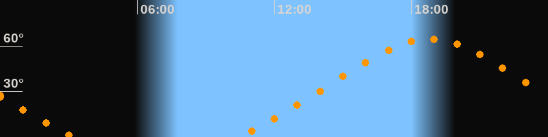 | Höchster Stand (Kulmination) | 18:48 Uhr (h = 64,6°) |