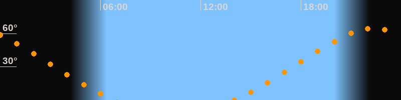 | Aufgang | 13:56 Uhr im Nordosten (αAz = 46,5°) |