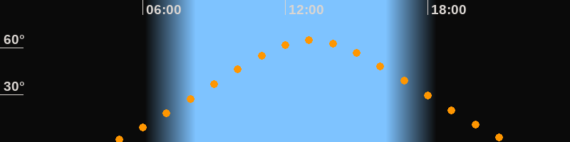 | Höchster Stand (Kulmination) | 13:06 Uhr (h = 64,6°) |