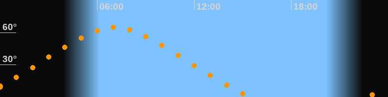 | Höchster Stand (Kulmination) | 07:05 Uhr (h = 64,6°) |
