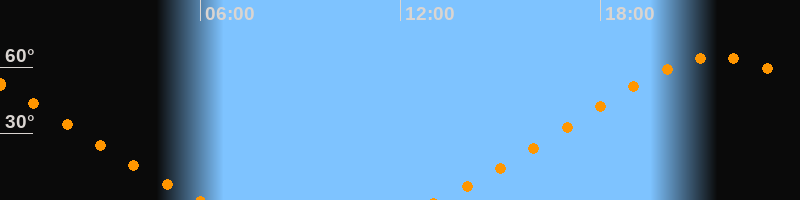 | Untergang | 06:00 Uhr im Nordwesten (αAz = 313,5°) |