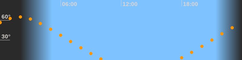 | Aufgang | 17:25 Uhr im Nordosten (αAz = 46,5°) |