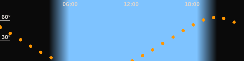 | Aufgang | 12:50 Uhr im Nordosten (αAz = 46,5°) |