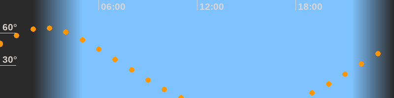 | Untergang | 11:09 Uhr im Nordwesten (αAz = 313,5°) |