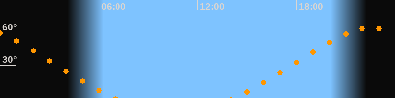 | Untergang | 07:02 Uhr im Nordwesten (αAz = 313,5°) |
