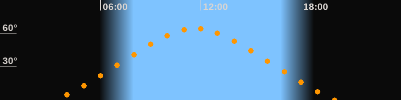 | Höchster Stand (Kulmination) | 11:40 Uhr (h = 64,6°) |