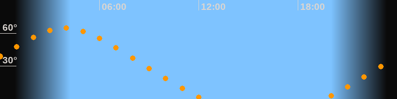 | Untergang | 12:21 Uhr im Nordwesten (αAz = 313,5°) |
