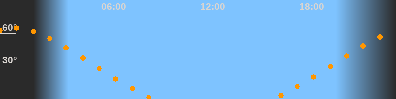 | Untergang | 09:20 Uhr im Nordwesten (αAz = 313,5°) |