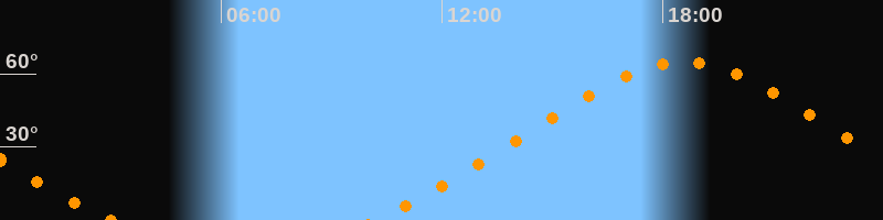 | Höchster Stand (Kulmination) | 18:34 Uhr (h = 64,6°) |