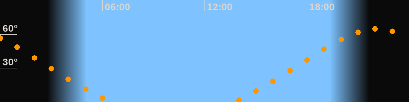 | Aufgang | 13:38 Uhr im Nordosten (αAz = 46,5°) |