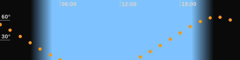 | Aufgang | 13:14 Uhr im Nordosten (αAz = 46,5°) |
