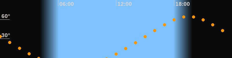 | Höchster Stand (Kulmination) | 19:30 Uhr (h = 64,6°) |