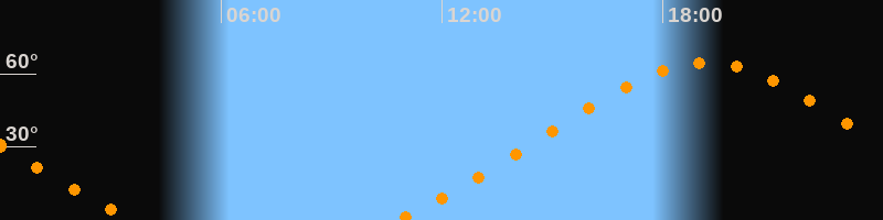 | Höchster Stand (Kulmination) | 19:10 Uhr (h = 64,6°) |