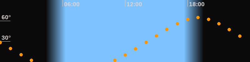 | Höchster Stand (Kulmination) | 18:58 Uhr (h = 64,6°) |