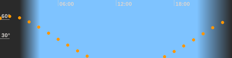 | Untergang | 09:30 Uhr im Nordwesten (αAz = 313,5°) |
