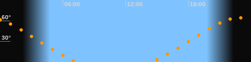 | Aufgang | 14:26 Uhr im Nordosten (αAz = 46,5°) |