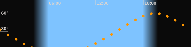 | Höchster Stand (Kulmination) | 19:27 Uhr (h = 64,6°) |