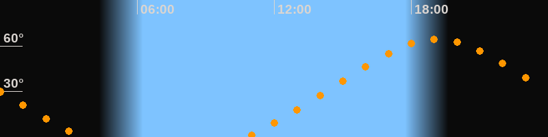| Höchster Stand (Kulmination) | 19:07 Uhr (h = 64,6°) |