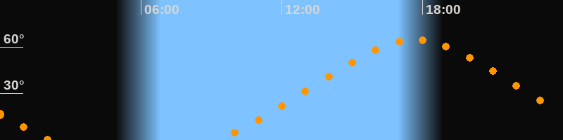 | Höchster Stand (Kulmination) | 17:41 Uhr (h = 64,6°) |