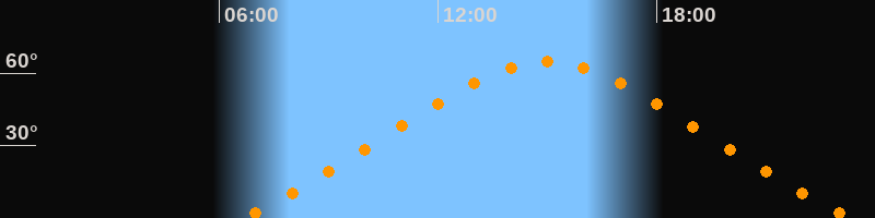 | Höchster Stand (Kulmination) | 14:59 Uhr (h = 64,6°) |