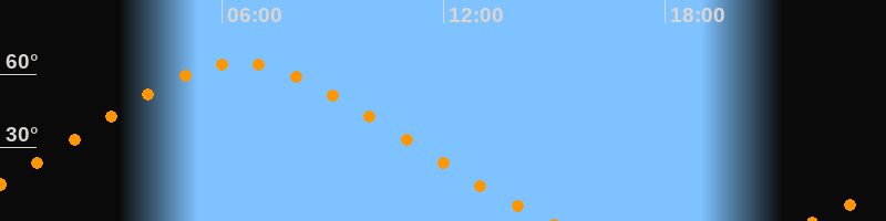 | Höchster Stand (Kulmination) | 06:28 Uhr (h = 64,6°) |