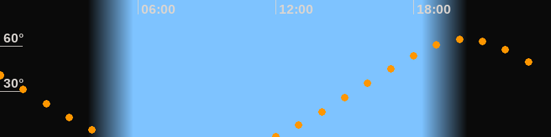 | Aufgang | 11:50 Uhr im Nordosten (αAz = 46,5°) |