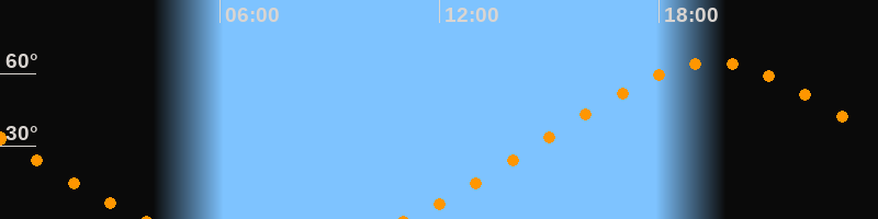 | Höchster Stand (Kulmination) | 19:28 Uhr (h = 64,6°) |