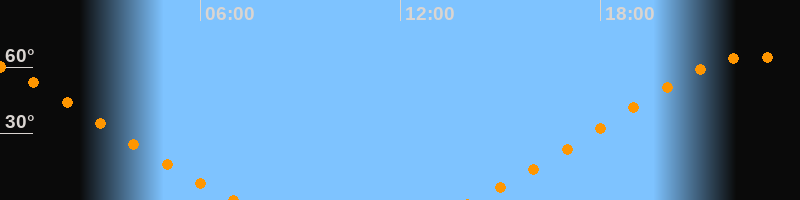 | Untergang | 07:04 Uhr im Nordwesten (αAz = 313,5°) |