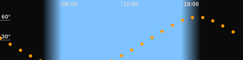 | Höchster Stand (Kulmination) | 19:26 Uhr (h = 64,6°) |