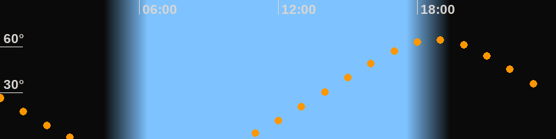 | Höchster Stand (Kulmination) | 18:46 Uhr (h = 64,6°) |