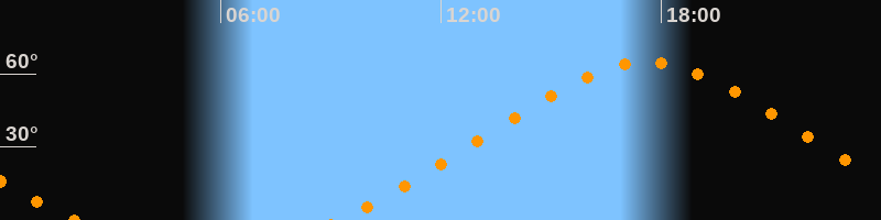 | Höchster Stand (Kulmination) | 17:36 Uhr (h = 64,6°) |