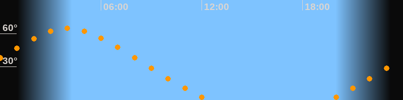 | Untergang | 12:27 Uhr im Nordwesten (αAz = 313,5°) |