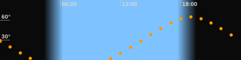 | Höchster Stand (Kulmination) | 18:59 Uhr (h = 64,6°) |